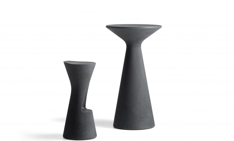 La sua superficie rigata crea un singolare gioco di ombre e le particolari finiture ricordano materiali naturali.