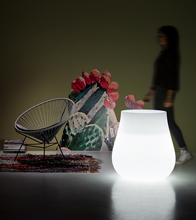 Suggestivo l’abbinamento con piante grasse o rami secchi decorativi per accentuare il contrasto con la semplicità della forma. Ideale per piante o decorazioni vegetali di media dimensione. In versione luminosa è adatto a svariati contesti: da quello domestico, ad ambienti interni classici o contemporanei, ma anche per giardini, terrazzi, portici o spazi aperti.