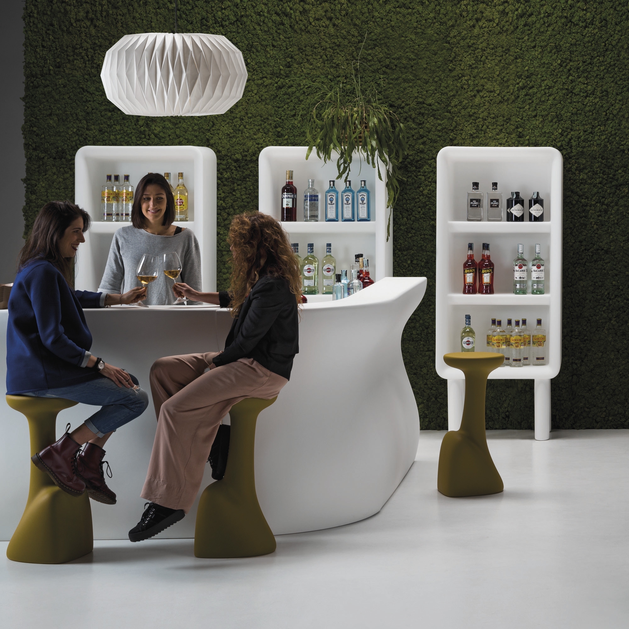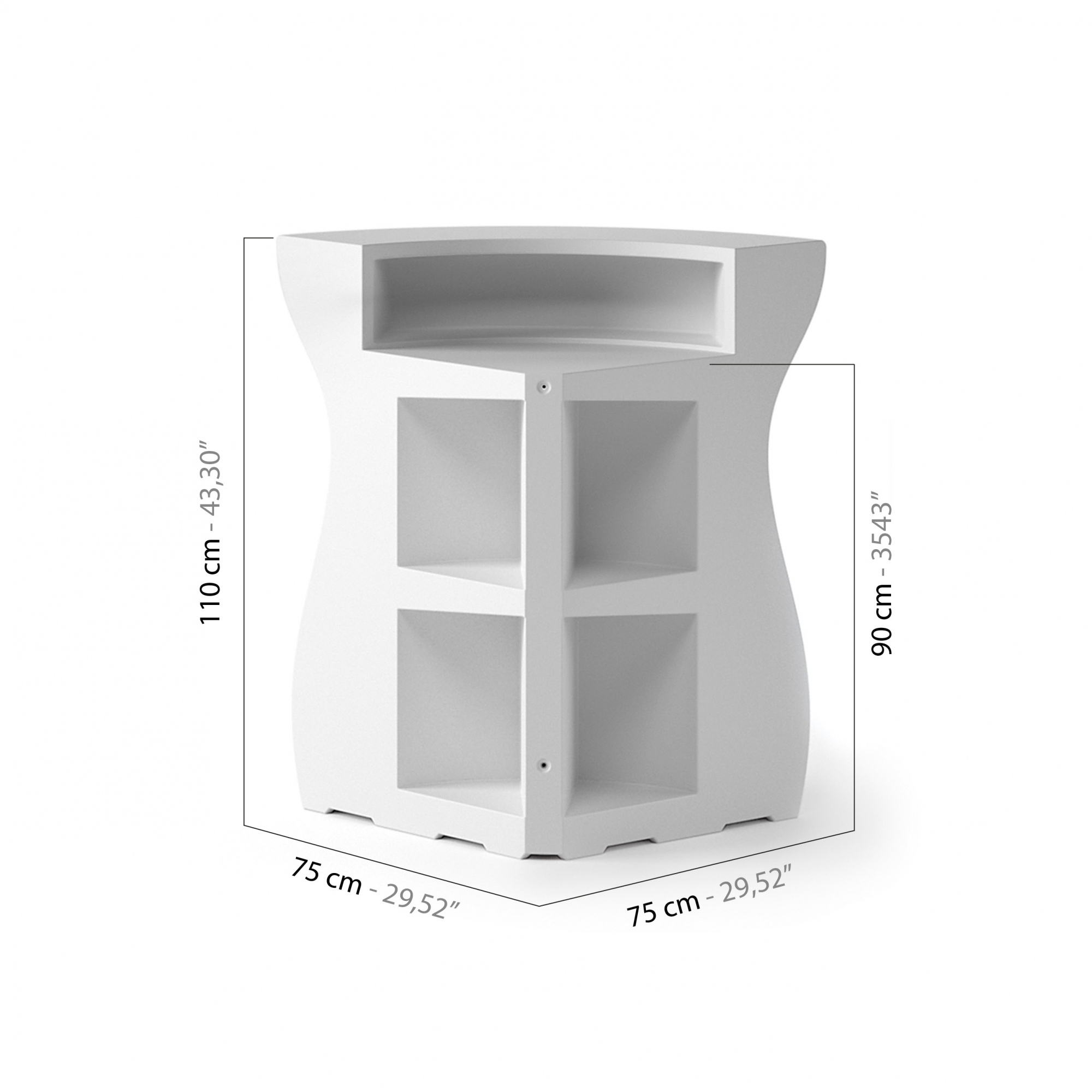 Facile da spostare, resistente agli urti, predisposto per un top di copertura, presenta 4 nicchie di stoccaggio, più 2 nicchie sul piano d’appoggio per l’utilizzo operativo. Abbinato all’elemento lineare svolge funzione di raccordo per infinite soluzioni dimensionali. Predisposto per alloggiare 1 kit luce standard o con luce RGB, utilizzato singolarmente o in coppia può dar vita ad avvolgenti reception illuminate.