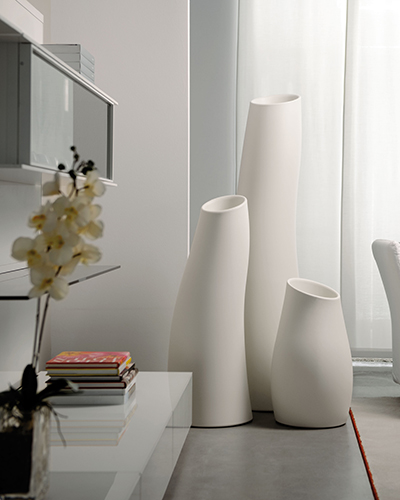 Trittico di vasi dalle forme fluide che riecheggiano l’armonia sinuosa di un corpo femminile.