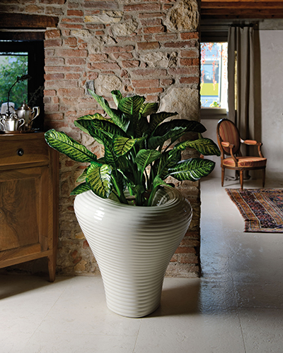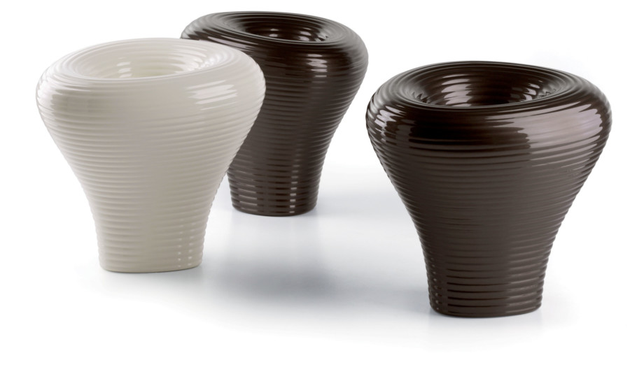 Vaso dalla superficie “vibrante” capace di creare dei preziosi giochi di luce soprattutto nella versione laccata.