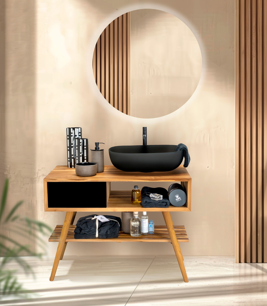 Perfetto quando i piccoli spazi hanno bisogno di un protagonista elegante. Pratico, funzionale e raffinatissimo nella versione Nite Shift, dove il nero dei dettagli incontra i calore ambrato del Teak javanese.