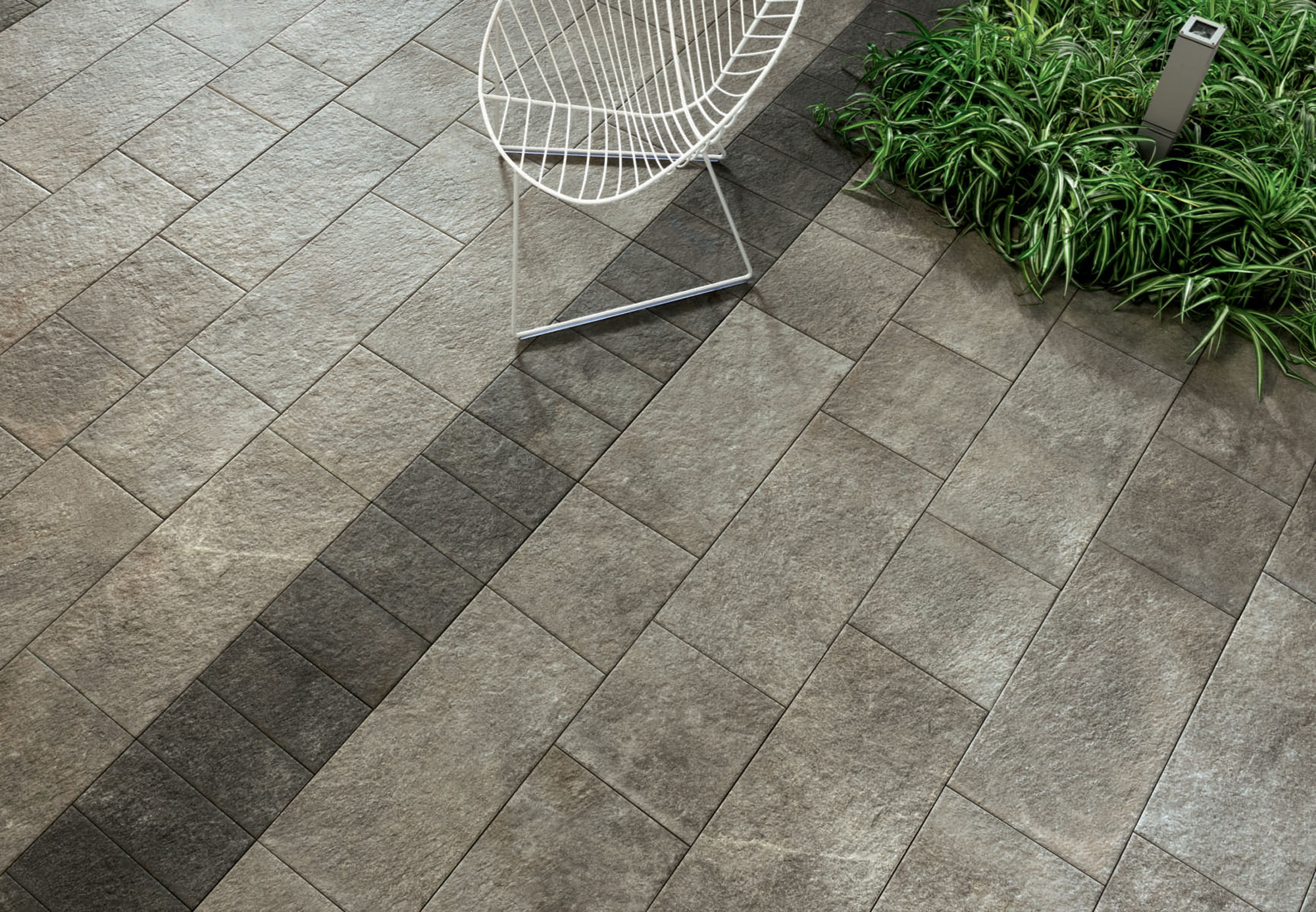 Vantando un'ampia gamma di formati, il grès porcellanato effetto pietra consente molteplici schemi di posa. Disponibile anche nella versione Aextra20 ad alto spessore per esterno, Eikon risulta ideale per pavimenti outdoor e si pone come soluzione perfetta per pavimenti indoor con presenza d’acqua, quali piscine o ambienti wellness, grazie alle sua proprietà antiscivolo e alla bassa assorbenza.