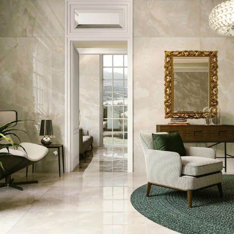 La collezione in gres porcellanato effetto marmo Onici rimanda alla bellezza del quarzo, il materiale naturale che costituisce di fatto l’Onice: una declinazione di toni che reinterpreta le cromie classiche del marmo riattualizzandole nel gres porcellanato in chiave contemporanea. Tra raffinate variazioni cromatiche e giochi sofisticati di luci e ombre, Onici comprende sei diverse texture in finitura naturale e lucida. Realizzata in gres porcellanato ad alte prestazioni, la collezione Onici è disponibile anche nelle lastre di grandi dimensioni perfette per esaltare i cromatismi cangianti e le sfumature tipiche della pietra naturale. La finitura lucida esalta la preziosità della superficie aumentandone la lucentezza e l’eleganza senza tempo, mentre le eccellenti proprietà del gres porcellanato rendono questo materiale versatile, in grado di adattarsi ai differenti ambienti e a qualsiasi stile, da quello contemporaneo a quello classico, chic e raffinato.