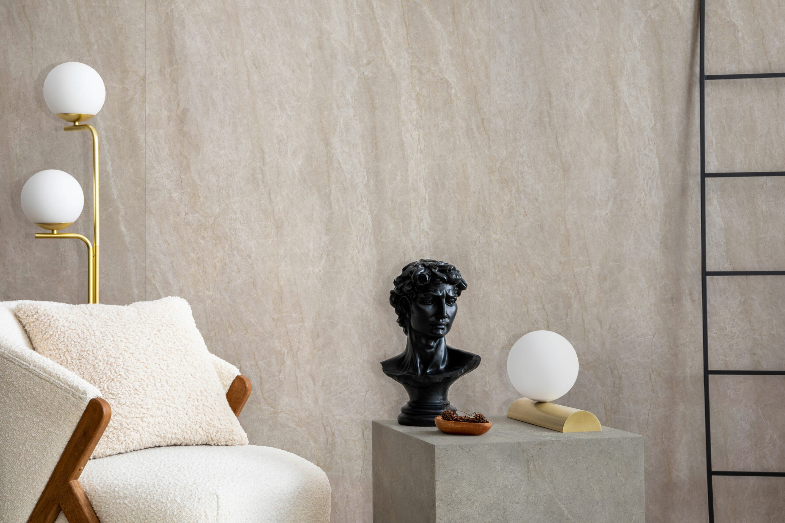 La serie Makrana di EnergieKer prende ispirazione dal celebre marmo bianco di Makrana, utilizzato nel Taj Mahal, reinterpretandolo in chiave moderna attraverso il gres porcellanato.