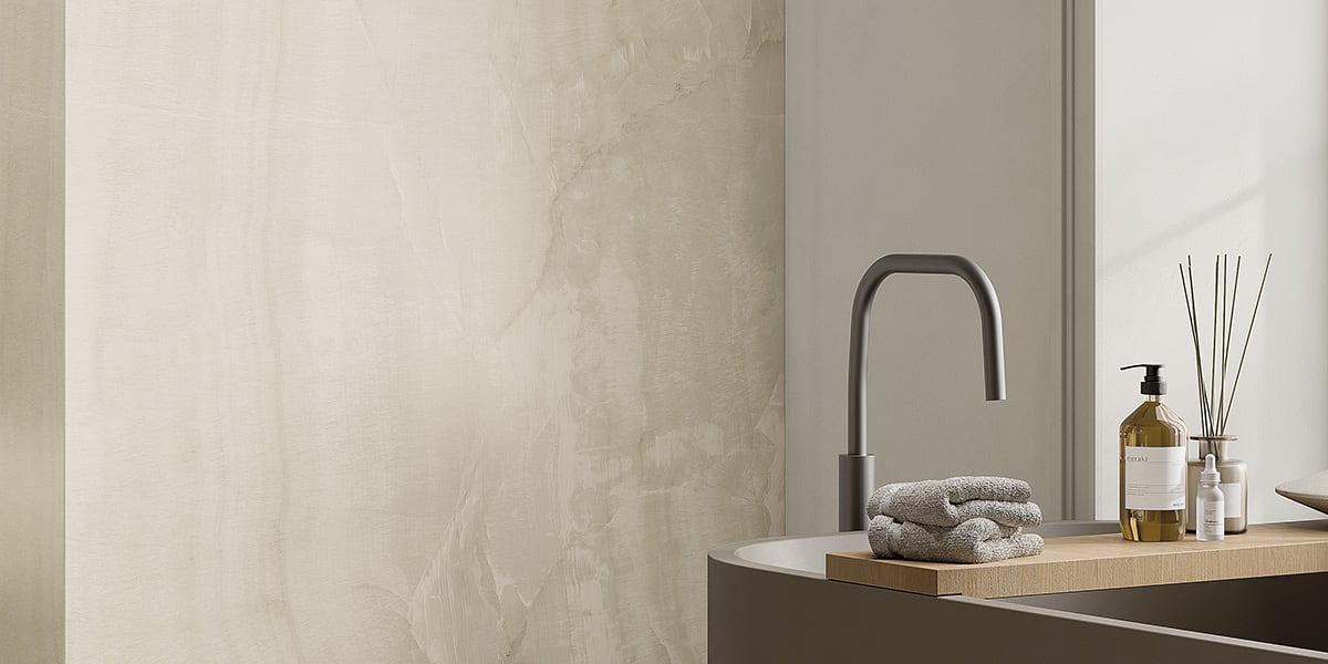 Le collezioni, disponibili anche in grandi lastre sottili, garantiscono resistenza, eleganza e versatilità per pavimenti, rivestimenti e arredi.