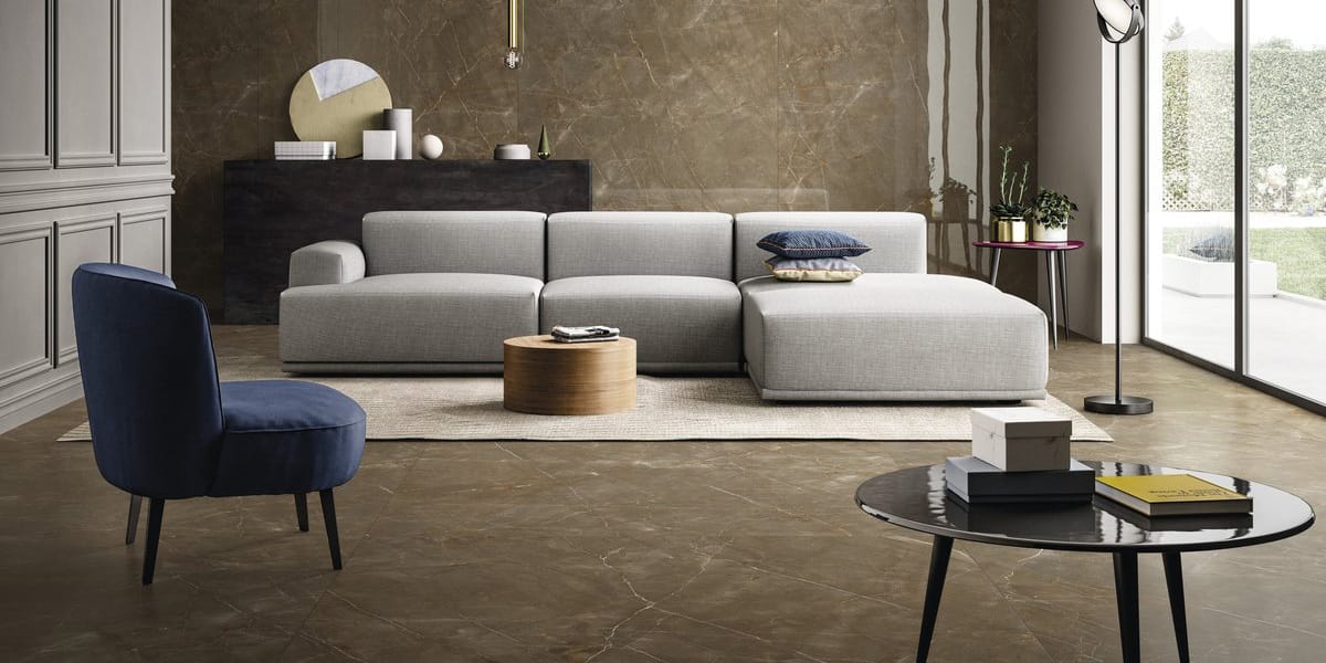 Le collezioni, disponibili anche in grandi lastre sottili, garantiscono resistenza, eleganza e versatilità per pavimenti, rivestimenti e arredi.