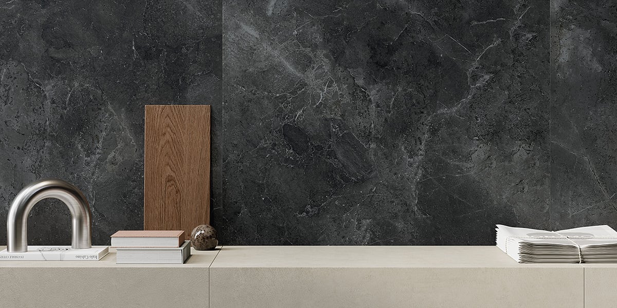 Le collezioni, disponibili anche in grandi lastre sottili, garantiscono resistenza, eleganza e versatilità per pavimenti, rivestimenti e arredi.