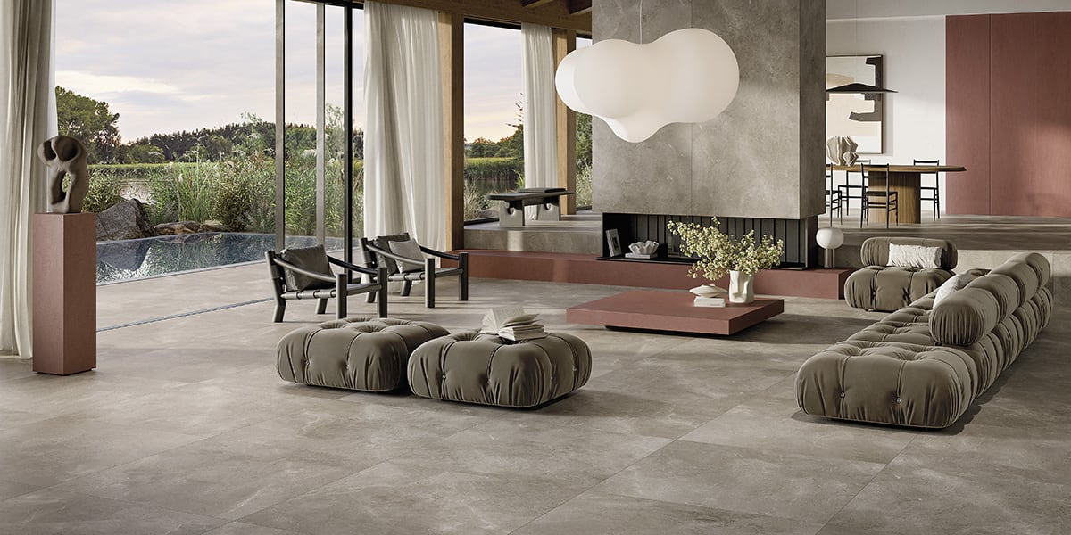 Le collezioni, disponibili anche in grandi lastre sottili, garantiscono resistenza, eleganza e versatilità per pavimenti, rivestimenti e arredi.