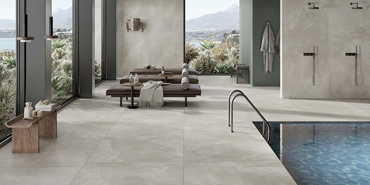 Le collezioni, disponibili anche in grandi lastre sottili, garantiscono resistenza, eleganza e versatilità per pavimenti, rivestimenti e arredi.