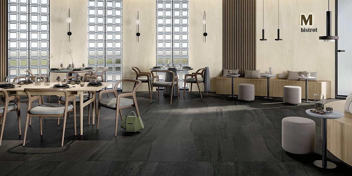 Le collezioni, disponibili anche in grandi lastre sottili, garantiscono resistenza, eleganza e versatilità per pavimenti, rivestimenti e arredi.