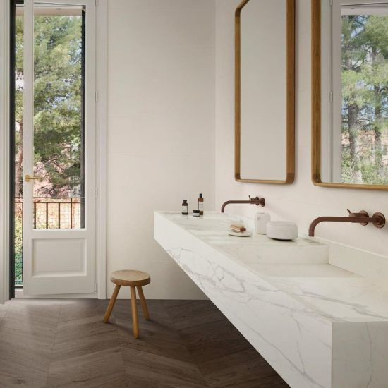 Tocco eclettico per la nuova collezione Racconti di Marazzi, in formato 30x90, che riempie le pareti di colore. La superficie matt, in 5 nuance naturali, è valorizzata da micro-puntinature tono su tono e restituisce interessanti giochi di luce e ombra che si amplificano attraverso la struttura materica 3D Segmenti, disponibile in tutti i colori. Caratterizzata da un’alternanza di volumi che creano un pattern geometrico minimale, tre decorazioni di ispirazione botanica e un decoro geometrico, ottenuti con tecnologia Inkjet Touch, offrono la possibilità di creare quinte, pareti e boiserie dal forte impatto scenografico.