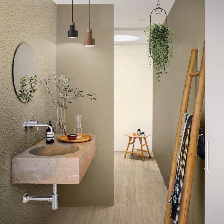 Tocco eclettico per la nuova collezione Racconti di Marazzi, in formato 30x90, che riempie le pareti di colore. La superficie matt, in 5 nuance naturali, è valorizzata da micro-puntinature tono su tono e restituisce interessanti giochi di luce e ombra che si amplificano attraverso la struttura materica 3D Segmenti, disponibile in tutti i colori. Caratterizzata da un’alternanza di volumi che creano un pattern geometrico minimale, tre decorazioni di ispirazione botanica e un decoro geometrico, ottenuti con tecnologia Inkjet Touch, offrono la possibilità di creare quinte, pareti e boiserie dal forte impatto scenografico.