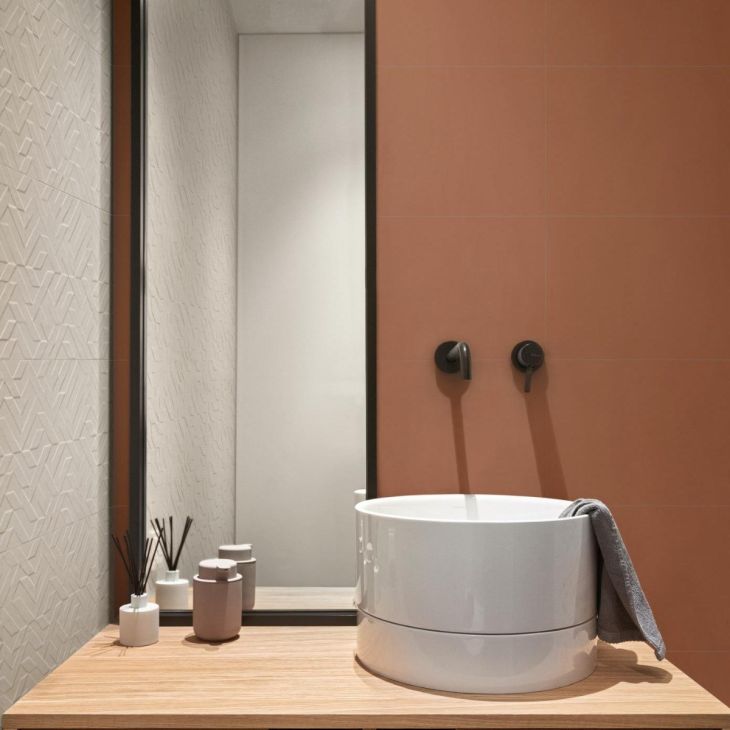 Tocco eclettico per la nuova collezione Racconti di Marazzi, in formato 30x90, che riempie le pareti di colore. La superficie matt, in 5 nuance naturali, è valorizzata da micro-puntinature tono su tono e restituisce interessanti giochi di luce e ombra che si amplificano attraverso la struttura materica 3D Segmenti, disponibile in tutti i colori. Caratterizzata da un’alternanza di volumi che creano un pattern geometrico minimale, tre decorazioni di ispirazione botanica e un decoro geometrico, ottenuti con tecnologia Inkjet Touch, offrono la possibilità di creare quinte, pareti e boiserie dal forte impatto scenografico.