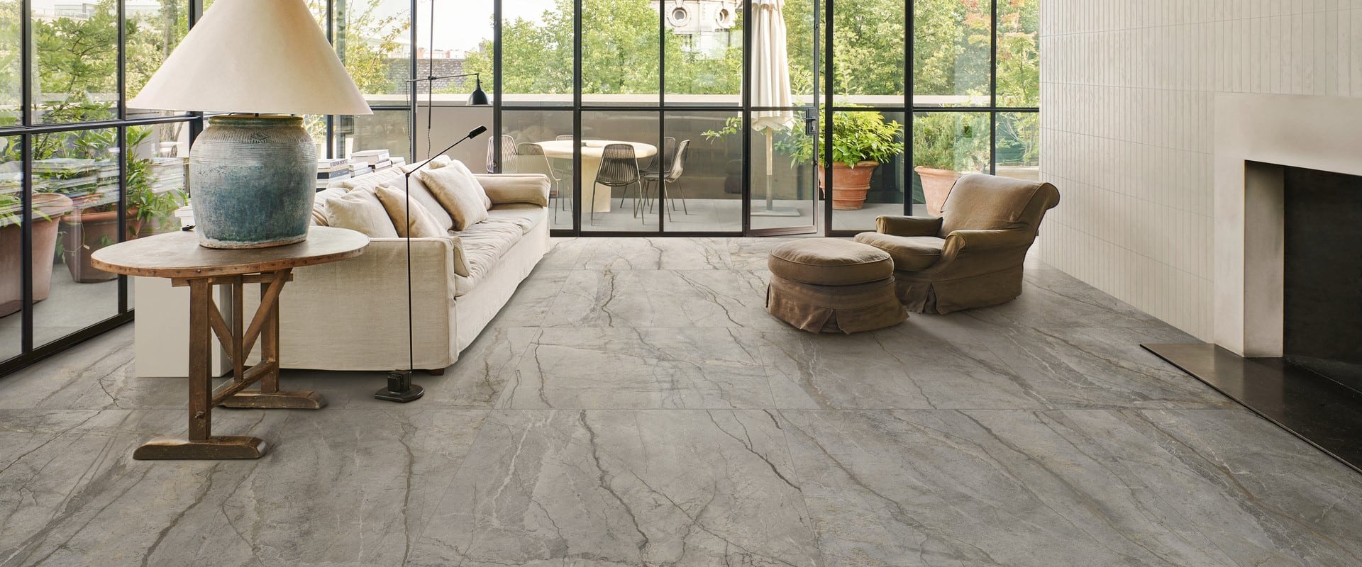 Mystone Silver Root sprigiona il carattere deciso della pietra naturale di ispirazione presentando venature marcate impresse su un fondo dalle sfumature intense. La tecnologia 3D Ink, impiegata nel processo produttivo, rende le venature molto profonde e ricche di dettagli, restituendo un effetto altamente realistico. Al colore Grigio, tipico della pietra naturale, si aggiungono due colori più chiari - Bianco e Beige - entrambi caldi. L’intera palette cromatica è declinata sui 4 formati 90x180, 120x120, 60x120 e 60x60 e su superficie R10, per un prodotto resistente e versatile. Due mosaici completano la collezione: il mosaico classico 30x30 e il mosaico Prisma su formato 30,3x30,3 composto da tessere dai lati irregolari, entrambi disponibili in tutti i colori della collezione. Forte di queste qualità, Mystone Silver permette di progettare ambienti caratterizzati da forte personalità in cui il pavimento è protagonista.