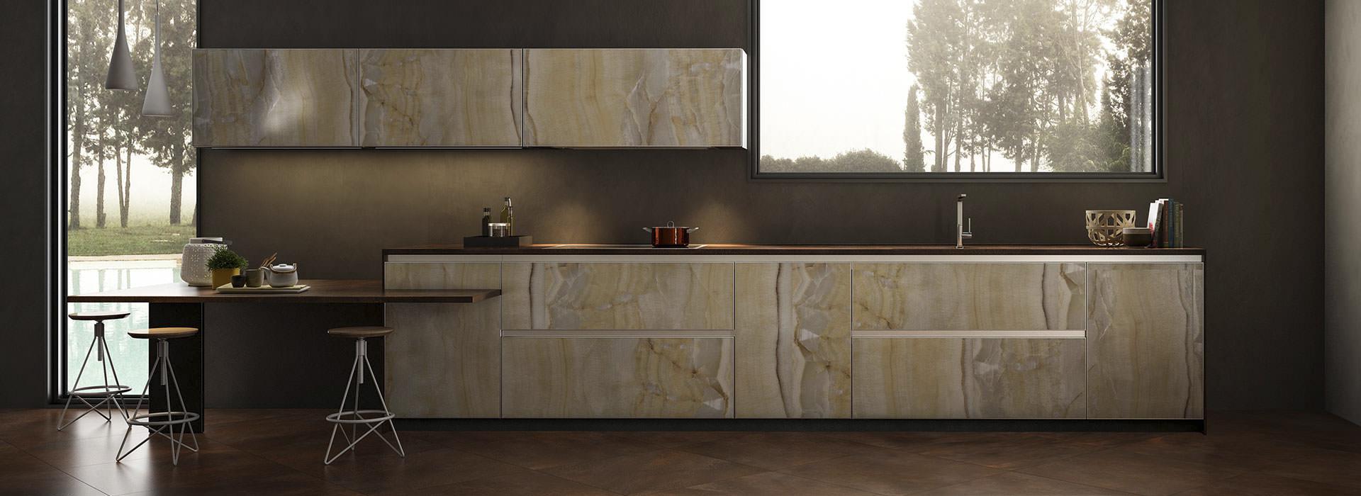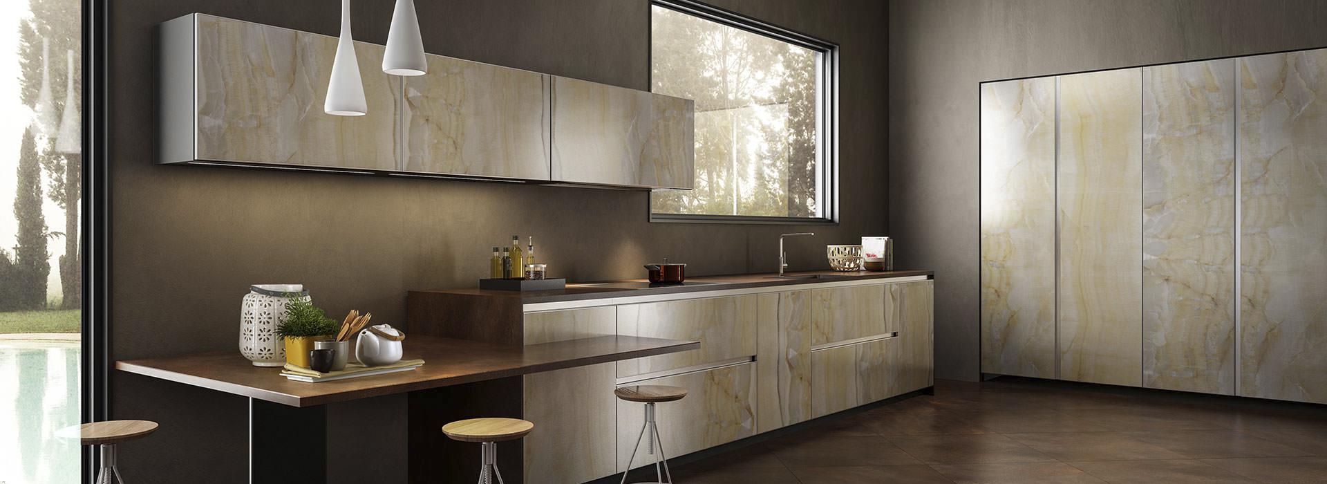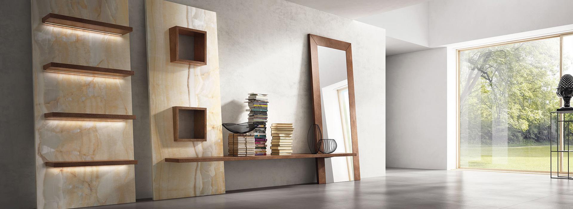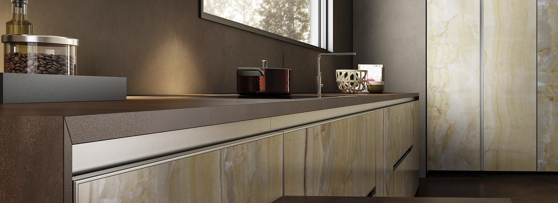 La linea di lastre Preciosity, una materia innovativa, supera i confini tra superfici per architettura e arredamento. La combinazione di forza e leggerezza, unita ai formati enormi e allo spessore sottile, consente di realizzare pavimenti, rivestimenti, arredi e finiture. Oltre a offrire superfici di alta qualità, offriamo anche un design unico che si distingue per ogni dettaglio.