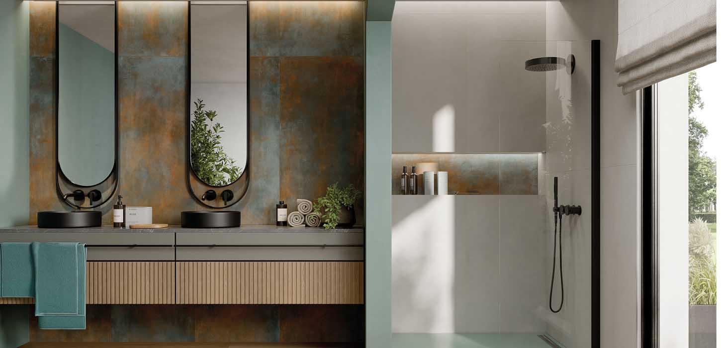 Grazie ai suoi effetti materici unici, Aurea può trasformare il bagno in uno spazio al tempo stesso spettacolare e intimo. Questa collezione di piastrelle offre delicate decolorazioni e contrasti sorprendenti tra trame e ossidazioni metalliche, conferendo un tocco di raffinatezza e originalità.