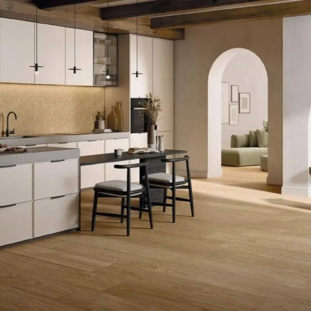 più marcate come Ecrù, Honey e Nut. Disponibile in 24x150 cm, e nel nuovissimo formato rettificato 23,4x148 cm la serie si completa con