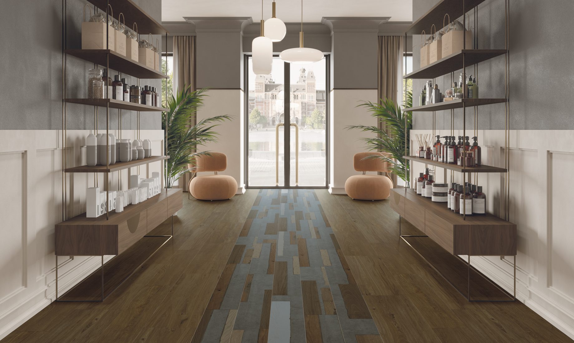 Ashley rappresenta un'incontro felice di materiali che dà vita a un'estetica raffinata e innovativa. Questo progetto in gres porcellanato fonde l'eleganza morbida delle essenze legnose con la forza del cemento.