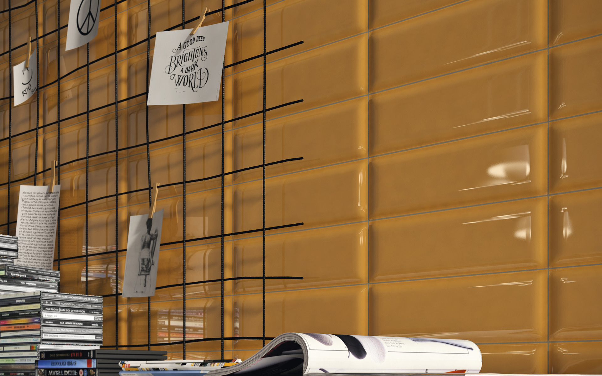 Il formato 10x30 cm si adatta a pareti piene, capaci di vestire e trasformare ogni stanza grazie a composizioni originali che giocano con riflessi e sfaccettature.