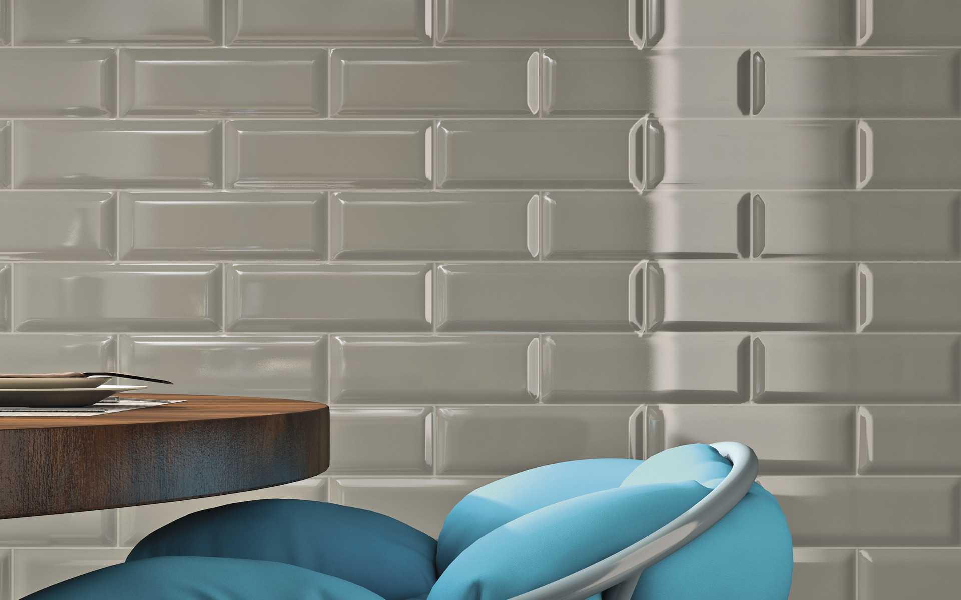 Il formato 10x30 cm si adatta a pareti piene, capaci di vestire e trasformare ogni stanza grazie a composizioni originali che giocano con riflessi e sfaccettature.