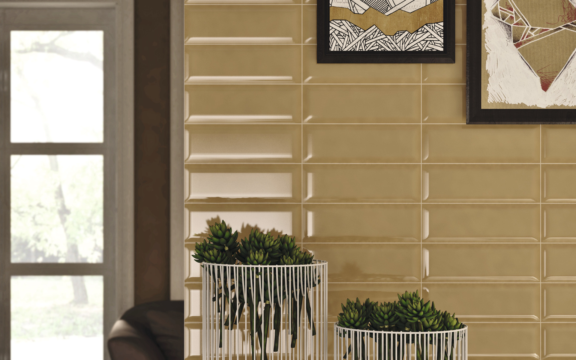 Il formato 10x30 cm si adatta a pareti piene, capaci di vestire e trasformare ogni stanza grazie a composizioni originali che giocano con riflessi e sfaccettature.