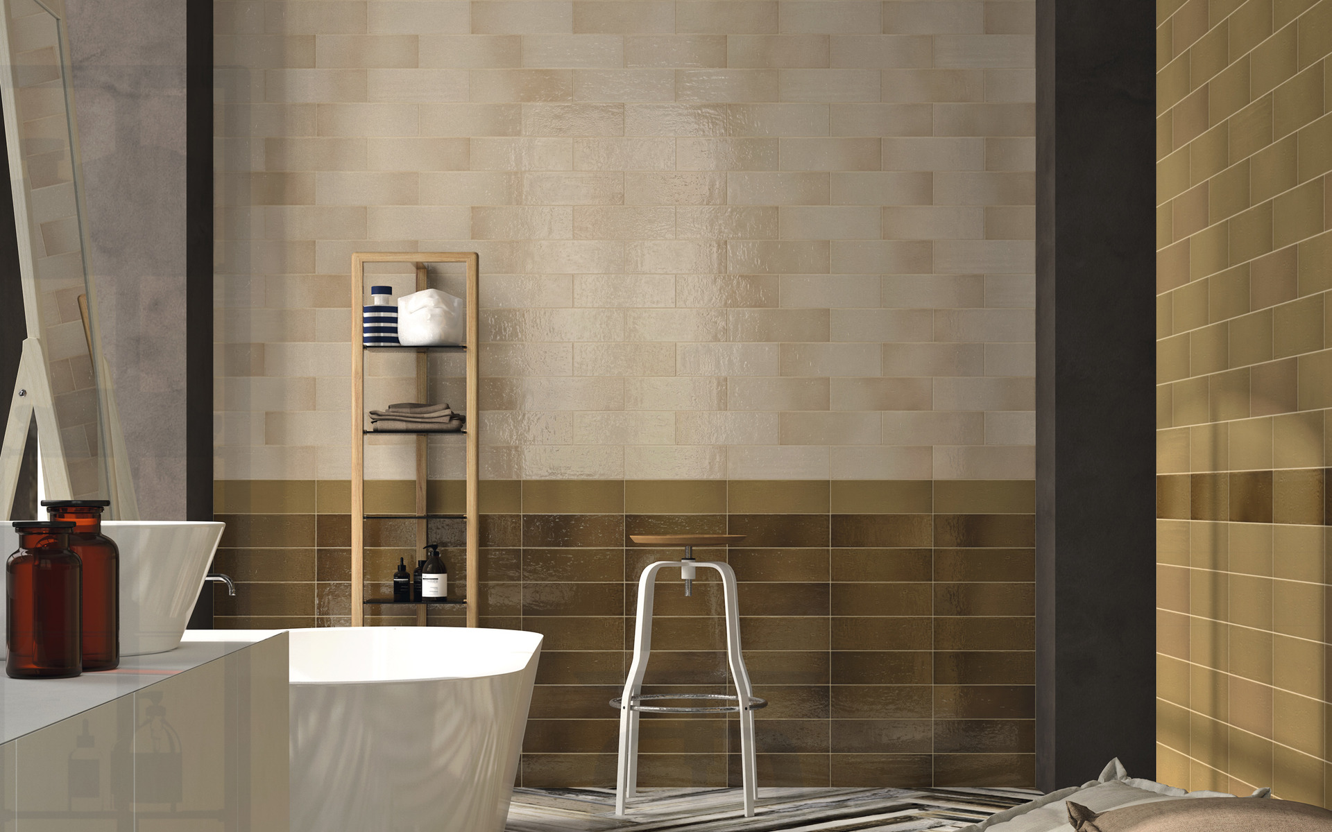 Aura rivisita in chiave chic l’estetica industrial del mattone faccia a vista, giocando con tinte neutre e sofisticate e proponendo due finiture, lucida e opaca, dalle accattivanti sfumature.Il risultato è un progetto in equilibrio tra essenzialità urban e grafiche contemporanee, arricchito da decori che, spezzando linee e creando movimenti, esprimono un ricercato e singolare accento dinamico.