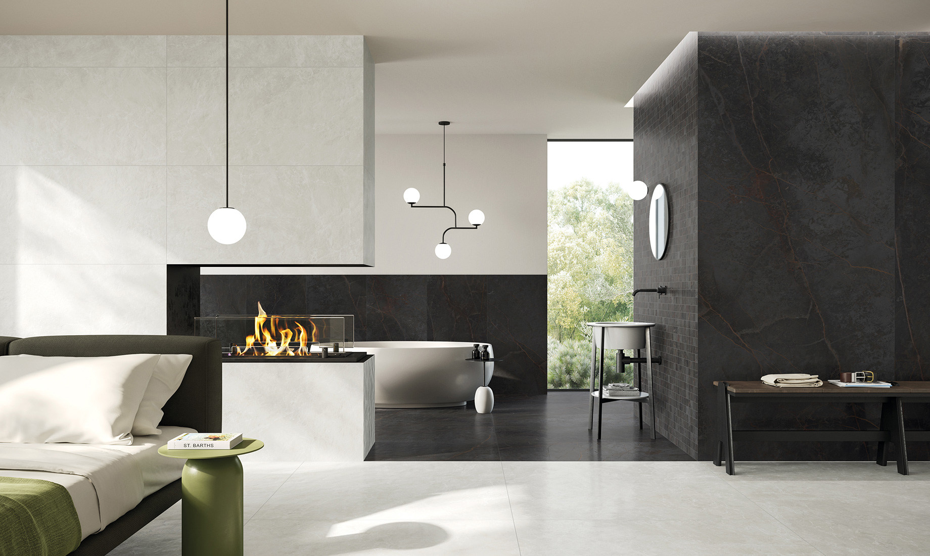 On Stage risponde alle esigenze dell'interior design attraverso colori vivaci e raffinati che invitano a creare abbinamenti cromatici e materici con formati prestigiosi e due finiture. Il risultato sono interazioni originali tra pareti, pavimenti ed elementi di arredo.