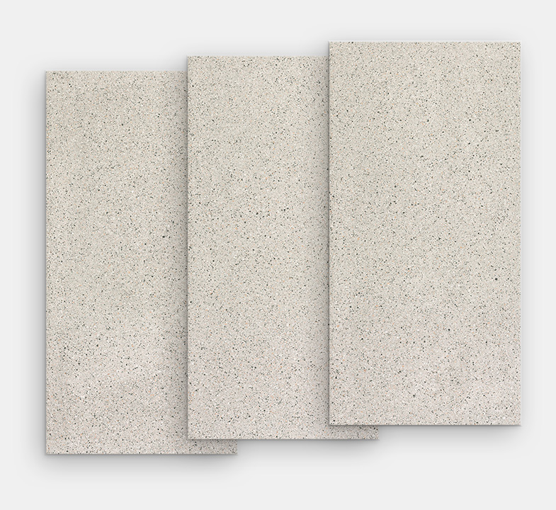 Ogni lastra presenta un’estetica diversa da tutte le altre. La distribuzione dei colori e della graniglia, casuale e irripetibile, compone un’armonia che ha il fascino unico della natura e della manualità artigianale.